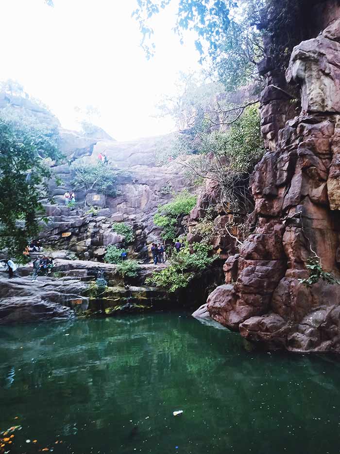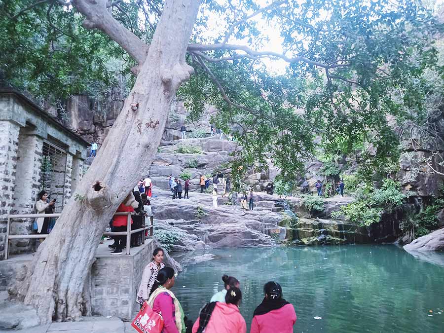 The natural beauty of this place is very breathtaking and the view here becomes even more beautiful during the rainy season. In the rainy season, a beautiful fountain is seen here, which falls on a Huge Pool below going from the mountains. Due to the waterfall, 3 small pools are formed here. All three Pools are known as Ram Kund, Sita Kund, and Laxman Kund. The view of all the pools (kundas) and the water falling on them becomes a very beautiful sight, people take photos and selfies here. There is water in all the kunds throughout the year, but there is a lot of water in the rainy season and there are trees and greenery all around.