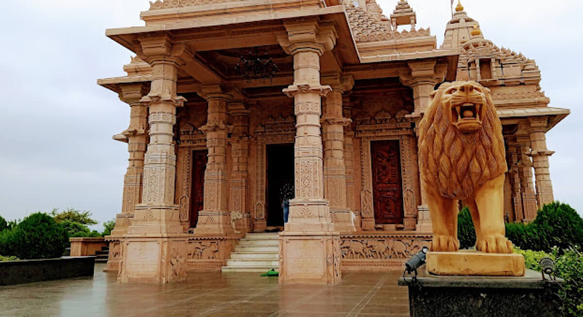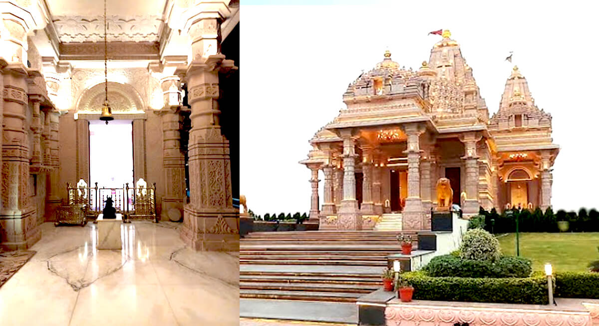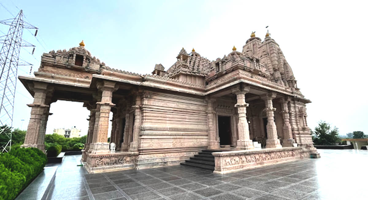 The foundation stone of this temple built in Akshardham style was done on 19th November 2011 and then work went on in this temple continuously for 7 years. Many skilled artisans from Jaipur worked here for many months and made beautiful idols of deities and flowers and leaves on the stones. The pink stone here was imported from Rajasthan.