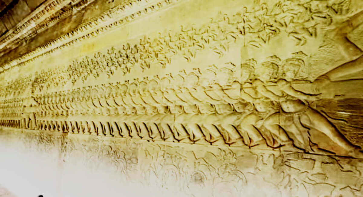- दीवारों पर की गई नक्काशी (Bas-Reliefs) में रामायण, महाभारत और खमेर साम्राज्य के युद्ध दृश्यों का सुंदर चित्रण है।